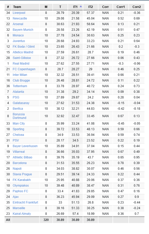 Фильтр Интервалы матча означает, что вы можете отдельно анализировать интервалы матча команды, когда она выигрывала, играла вничью или проигрывала. После применения фильтра длительность в минутах выбранного интервала(ов) будет отображаться в каждом матче. Средние данные рассчитываются на основе 95 минут (средняя продолжительность футбольного матча). Фильтр очень полезен для ставок в лайве, потому что не секрет, что в зависимости от текущего счета стиль игры команды может сильно различаться, и это напрямую влияет на то, как команда держит мяч, подает угловые, получает карточки и др. x |