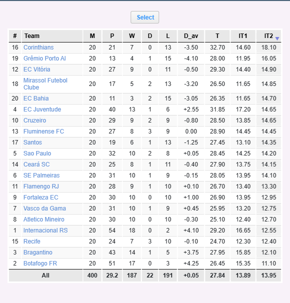 Corinthians имеет наибольший тотал фолов противника в турнире Serie A (Brazil) (последние 20 матчей) (18.10)