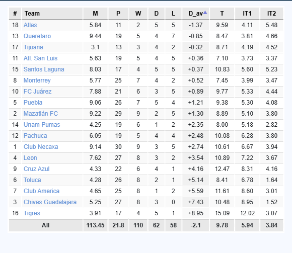 Фильтр Интервалы матча означает, что вы можете отдельно анализировать интервалы матча команды, когда она выигрывала, играла вничью или проигрывала. После применения фильтра длительность в минутах выбранного интервала(ов) будет отображаться в каждом матче. Средние данные рассчитываются на основе 95 минут (средняя продолжительность футбольного матча). Фильтр очень полезен для ставок в лайве, потому что не секрет, что в зависимости от текущего счета стиль игры команды может сильно различаться, и это напрямую влияет на то, как команда держит мяч, подает угловые, получает карточки и др. x |