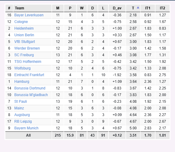 Bayer Leverkusen имеет наименьший тотал офсайдов на выезде в этом сезоне в турнире Bundesliga (Germany) (2.18)